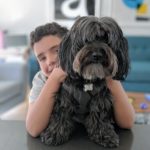 He’s doing great and we are really enjoying him. He gets his final shots next week and will then be able to mingle w/ other dogs at the park. Here is a picture of him w/ our son. Thanks for all your work w/ him. Matt
