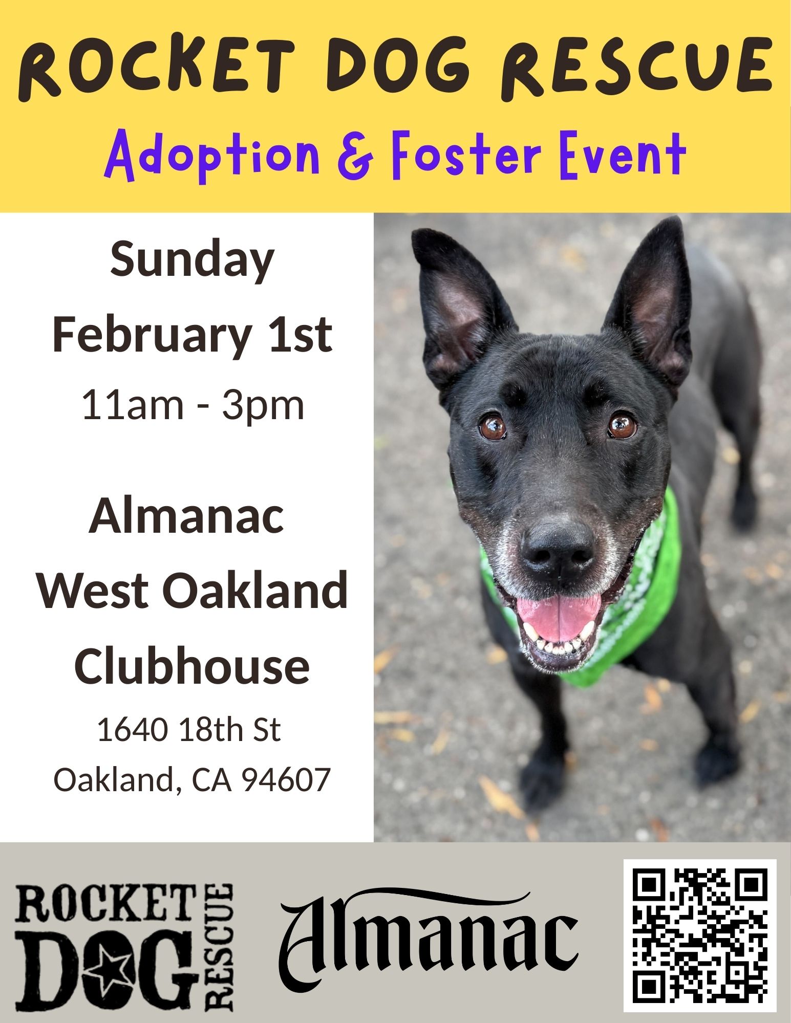 Pop-Up Adoption•Foster Event @Almanac W. Oakland Clubhouse (Oakland) Loading Map.... 1640 18th Street - Oakland Details 37.814864 -122.292414 Date/Time February 1, 202611:00 am - 3:00 pm Location Almanac West Oakland Clubhouse Description Volunteer at an Event